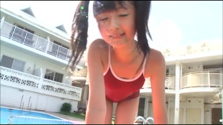 発育中おぱいを押さえつけるレーシーな水着